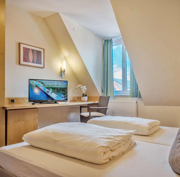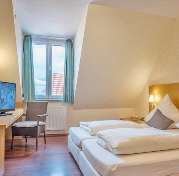Die genannten Zimmerpreise verstehen sich in Euro pro Zimmer und Nacht und sind jeweils inklusive Service und der aktuellen gesetzlichen MwSt, gültig ab 01.01.2026. Das Frühstück servieren wir in Buffetform und kann pro Person optional dazu gebucht werden.